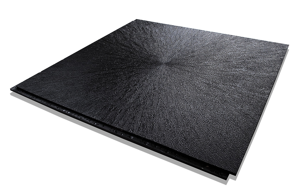aus W-PVC-Recyclingmaterial, schwarz, Oberfläche glatt, Feder oder NutClip-Antrittplatte